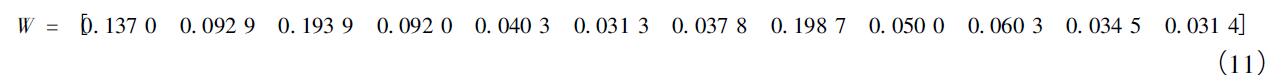 優(yōu)化后矩陣的一致性比例CR=0.0577<0.1000,滿足判斷矩陣的一致性要求。