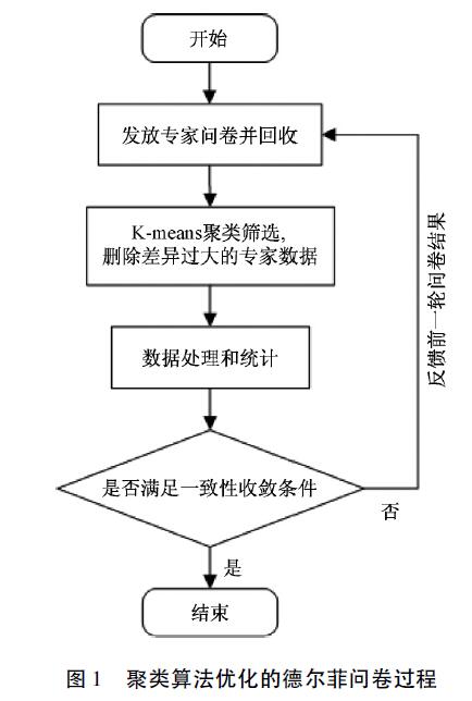德爾菲法是一種采用背對背通信方式征詢專家小組成員預(yù)測意見,并通過多輪征詢使意見趨于一致的定性評價法。聚類算法是以相似性為基礎(chǔ),將相似性強(qiáng)的樣本聚成一類的研究分類問題的統(tǒng)計分析方法。